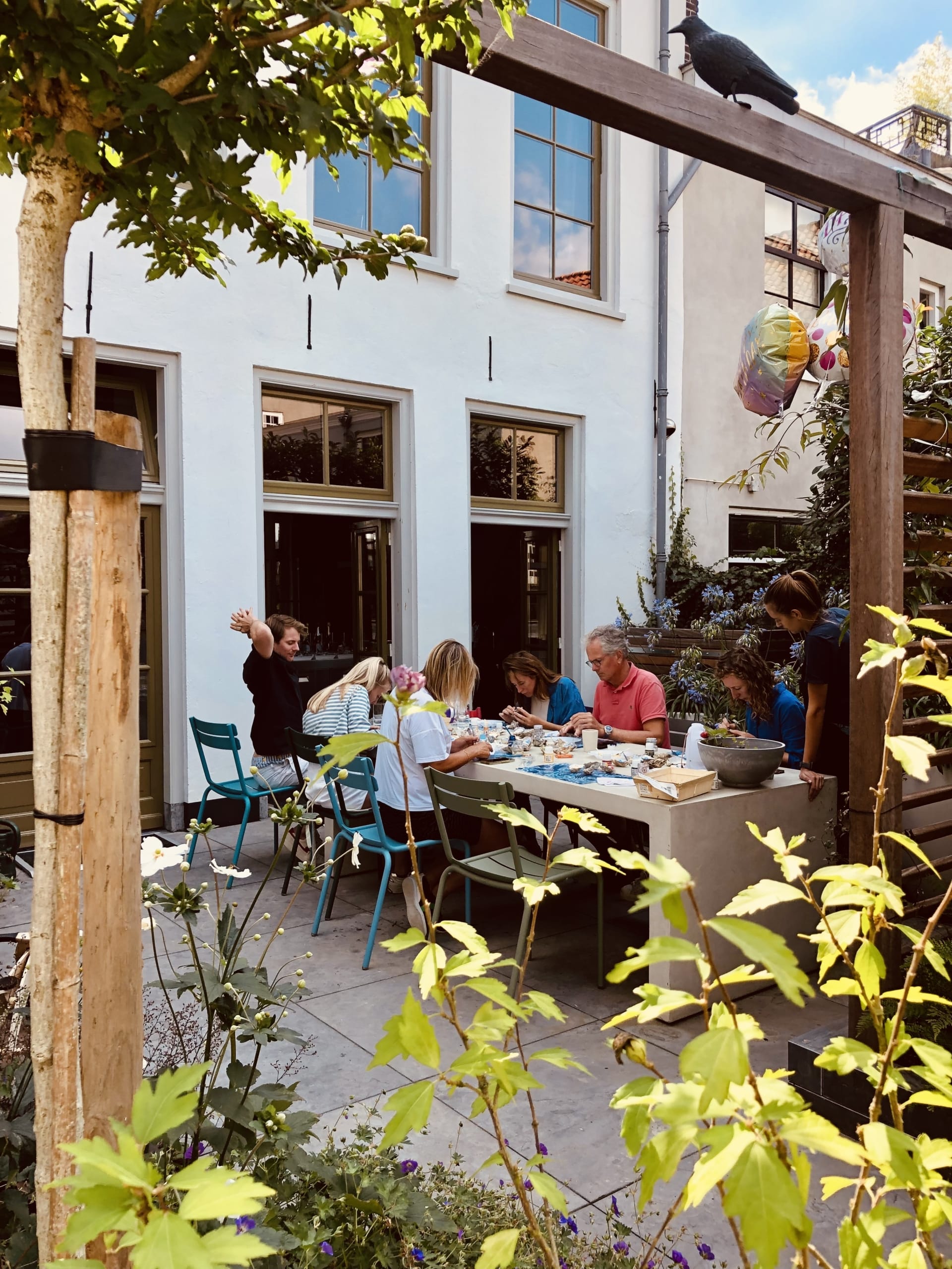 - Indien de workshop plaatsvindt in de sfeervolle jaren ’50 woning aan de Dorpstraat in Leende, dan is deze workshop inclusief koffie/thee, Brabantse lekkernij en een vers gemaakte uitgebreide lunch met producten uit eigen tuin of van de plaatselijke boer en een kaasplankje en glas wijn tijdens de nabespreking. Een “kunstig” taartje, lunch etc is mogelijk in overleg.