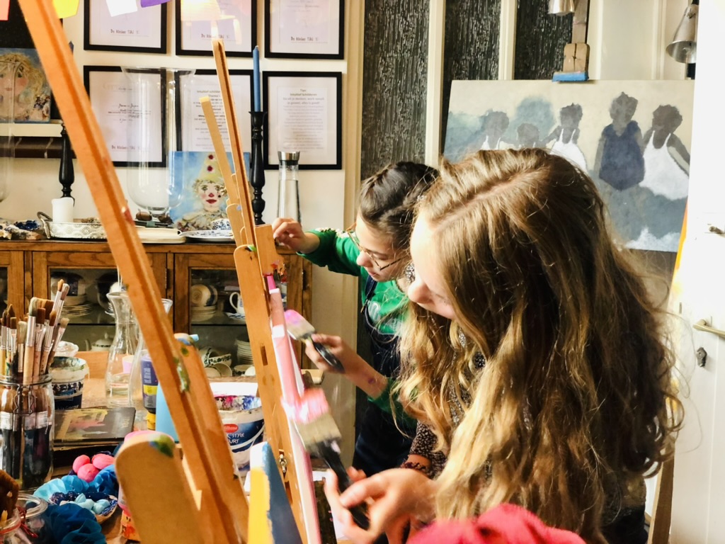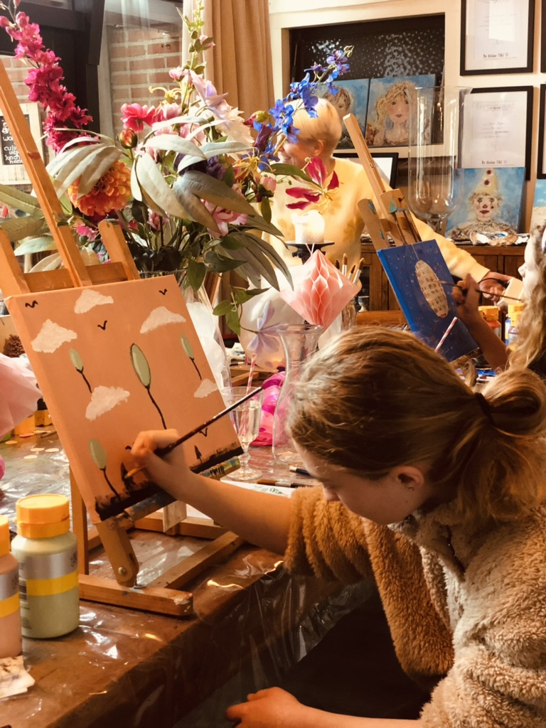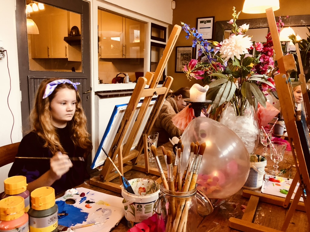 Binnenkort een kinderfeestje te vieren of gewoon gezellig op stap met vriendjes en vriendinnetjes? Boek dan een schilderworkshop voor kinderen met high tea bij Marianne Baijens. Kom samen met vriendjes en vriendinnetjes schilderen, van 10.30 tot 14.30 uur of van 13.00 tot 16.00 uur. En geniet voor of na het schilderen van een heerlijke, uitgebreide high tea.