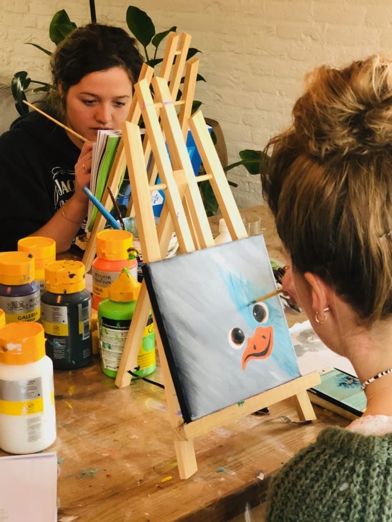 Ook een korte workshop van 2- 2,5 uur is mogelijk! Bijvoorbeeld schilderen op een klein doekje van 20×20 cm met jong en oud.